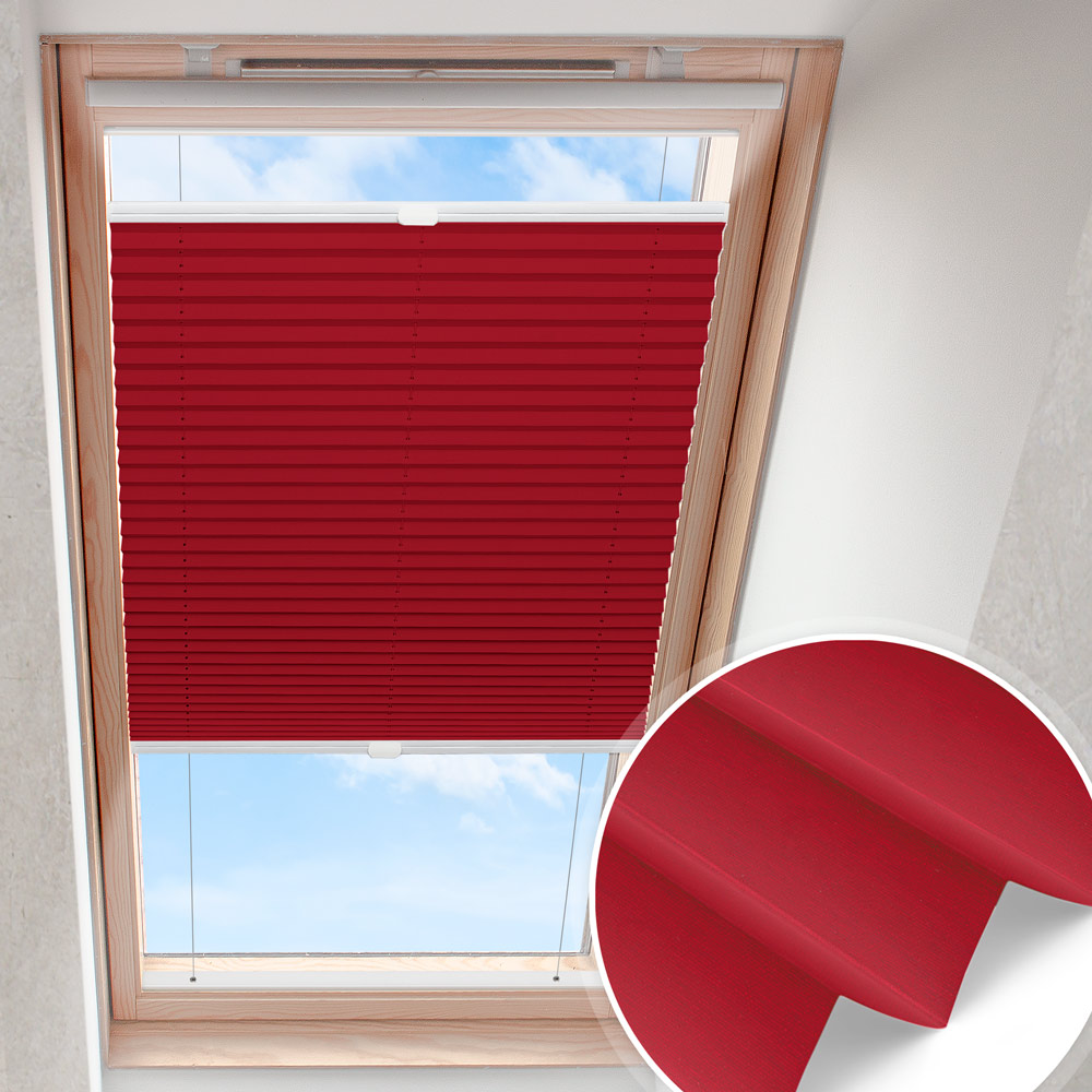 Productinformatie "Dakraam plisségordijn Donkerrood | verduisterend parelmoer"