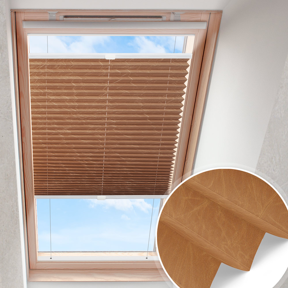 Productinformatie "Dakraam plisségordijn Goudbruin | crushed parelmoer"