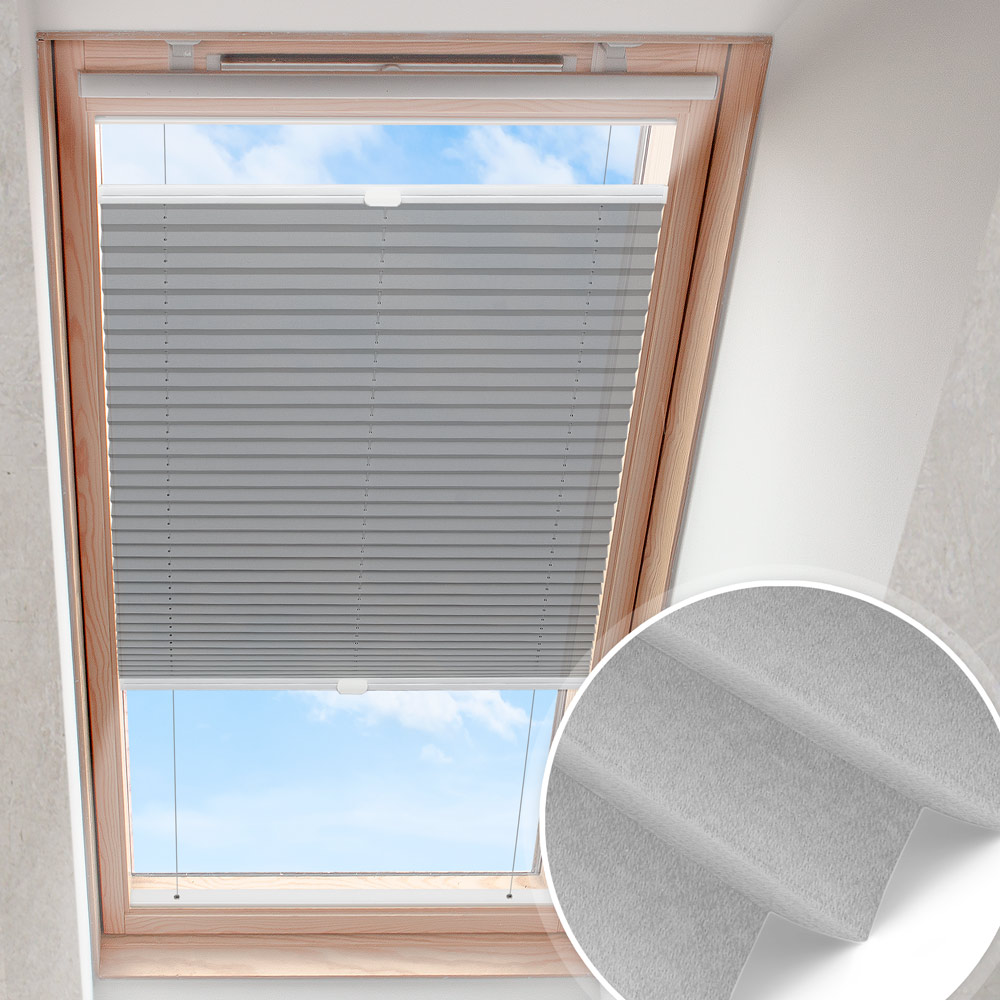 Productinformatie "Dakraam plisségordijn Lichtgrijs | parelmoer"
