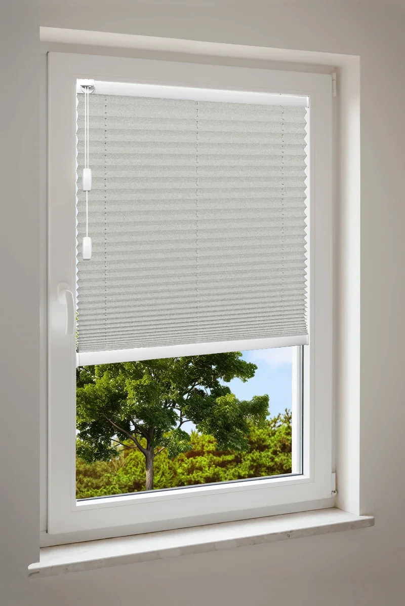 Maßgefertigtes Cosiflor® F1 Plissee in stilvollen beigen Stoffvarianten – ideal für eine natürliche und harmonische Raumgestaltung