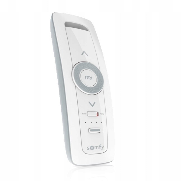 Émetteur radio élégant pour jusqu'à 5 groupes de moteurs io ou récepteurs io. La molette innovante permet de tourner confortablement et précisément les lamelles de stores vénitiens ou de contrôler intuitivement les variateurs de lumière (luminosité,température de couleur et couleur) et les variateurs de chauffage.