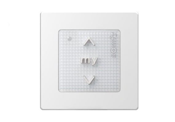 Émetteur mural sans fil avec boutons-poussoirs pour le contrôle des moteurs io ou des récepteurs io. Un produit ou un groupe de produits peut être commandé.